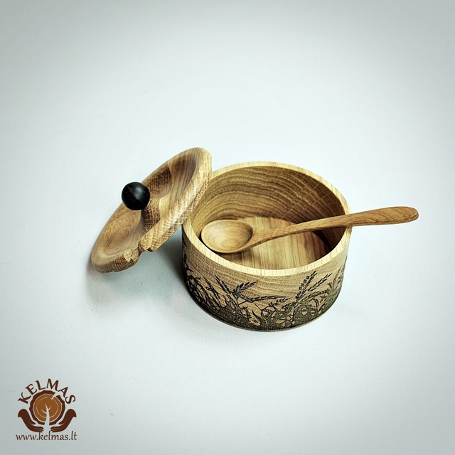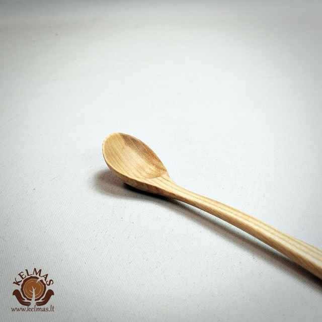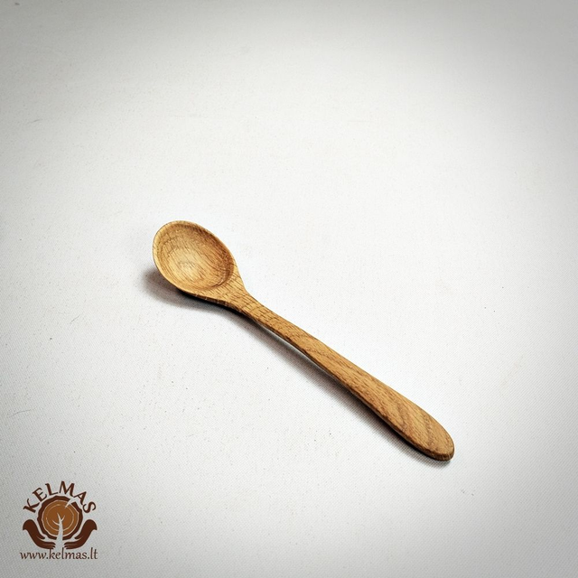 Mažas medinis šaukštelis, pagamintas iš natūralaus medžio – uosio, klevo arba ąžuolo. Paviršius lygus, švelniai nušlifuotas ir padengtas natūraliu aliejaus bei vaško mišiniu, kuris paryškina medžio raštą ir suteikia apsaugą nuo drėgmės. Paprastos, klasikinės formos su šiek tiek gilesne galvute ir patogiu, plonėjančiu koteliu. Tinka prieskoniams, druskai, cukrui ar medui semti, taip pat naudojamas kaip dekoratyvinis priedas prie medinių indų.
