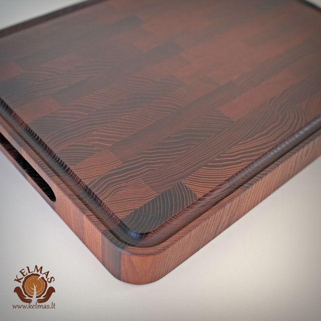 Tvirta ir ilgaamžė pjaustymo lentelė iš termiškai apdoroto uosio. Galu pjauta struktūra saugo peilių ašmenis ir leidžia lentai išlikti patvariai daugelį metų. Termo mediena pasižymi sodriu, šiltu atspalviu ir atsparumu drėgmei. Paviršius alyvuotas ir vaškuotas natūraliu mišiniu, todėl lentelė yra saugi sąlyčiui su maistu. Puikus pasirinkimas tiems, kurie vertina natūralumą, ilgaamžiškumą ir elegantišką medžio raštą. Ši lenta taip pat turi patogias išfrezuotas rankenas, todėl ją lengva pakelti ir pernešti. Gali būti komplektuojama su grioveliu skysčiams, kad maisto ruošimas būtų dar patogesnis ir švaresnis.
